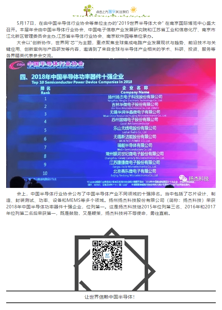 【喜訊】揚(yáng)杰科技入選“2018江蘇百強(qiáng)創(chuàng)新型企業(yè)”榜單